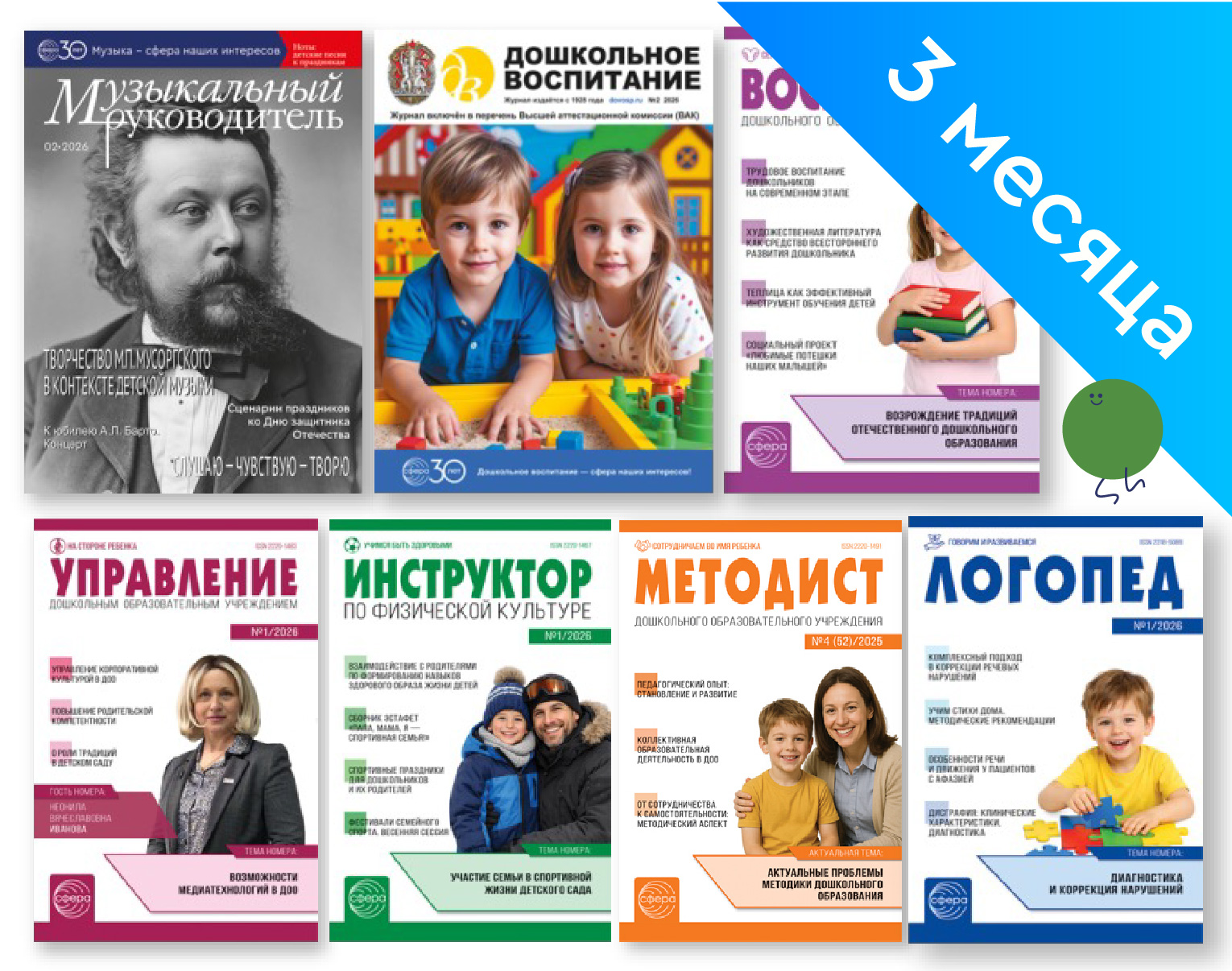 Электронная подписка на полный комплект подписных изданий плюс "Дошкольное воспитание" на три месяца (апрель, май, июнь) 2026г.